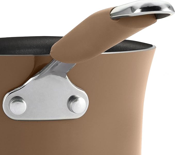 - DURABLE BY DESIGN: Rachael Ray’s Cucina nonstick pots and pans are crafted with durable aluminum and sturdy hard-enamel porcelain exteriors (in stylish colors!), so they’re long lasting and good looking