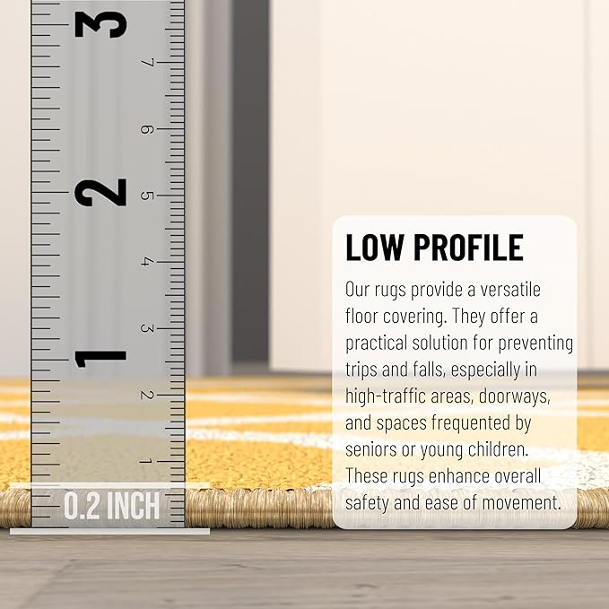 - [LOW PILE]: A low pile thickness of 0.2 inches offers ideal functionality that is perfect for busy areas, underneath furniture, and in entryways as it will not obstruct doorways