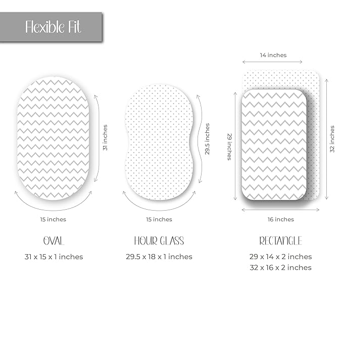 - Flexible-Fit Bassinet Sheet 2-Pack for Baby Boy or Baby Girl in Grey Chevron & Polka Dot Design – Bundled in our charmingly cute and compact packaging, this set makes for the perfect baby shower gift!