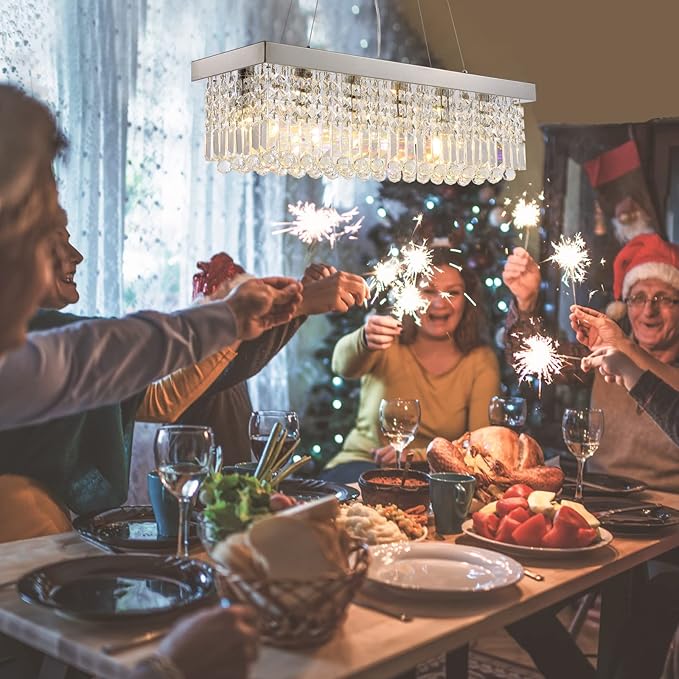 - Comfortable Lighting: The kitchen crystal chrome chandelier light fixtures fits 6xE12 bulbs (not included). It can also be dimmed when you use dimmable bulbs and compatible dimming switches, giving you the most comfortable illumination.