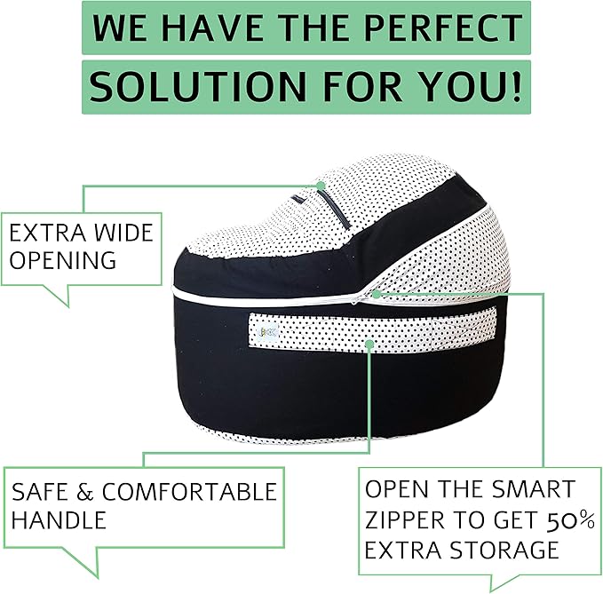 2 Sizes in 1 Stuffed Animal Storage Bean Bag Chair Cover for Kids & Adults | Washable XL Stuffie Seat | 100% Cotton | Pouf Organizer for Plush Toys, Linens, Quilts & Pillows | Black & White