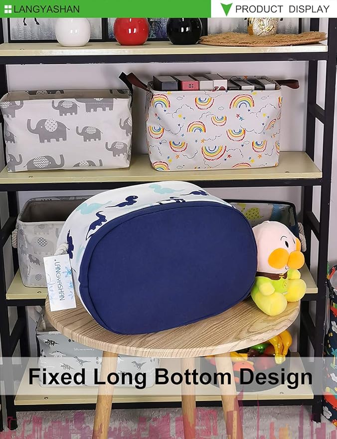 LANGYASHAN Oval Storage Basket Collapse Canvas Fabric Cartoon Storage Bin with Handles for Organizing Home Kitchen Boys and Girls Toy Office Closet Shelf Baskets (Dinosaur)