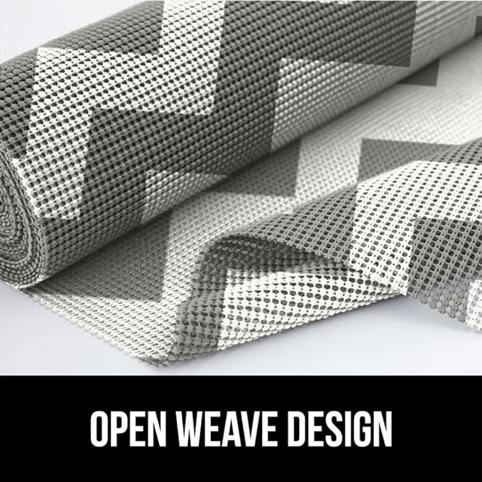 Gorilla Grip powerGRIP Drawer Shelf and Cabinet Liner, Thick Strong Hold, Non-Adhesive Liners Protect Kitchen Cabinets and Cupboard, Bathroom Drawers, Easy Install, Breathable Mat, 17.5"x20', Chevron