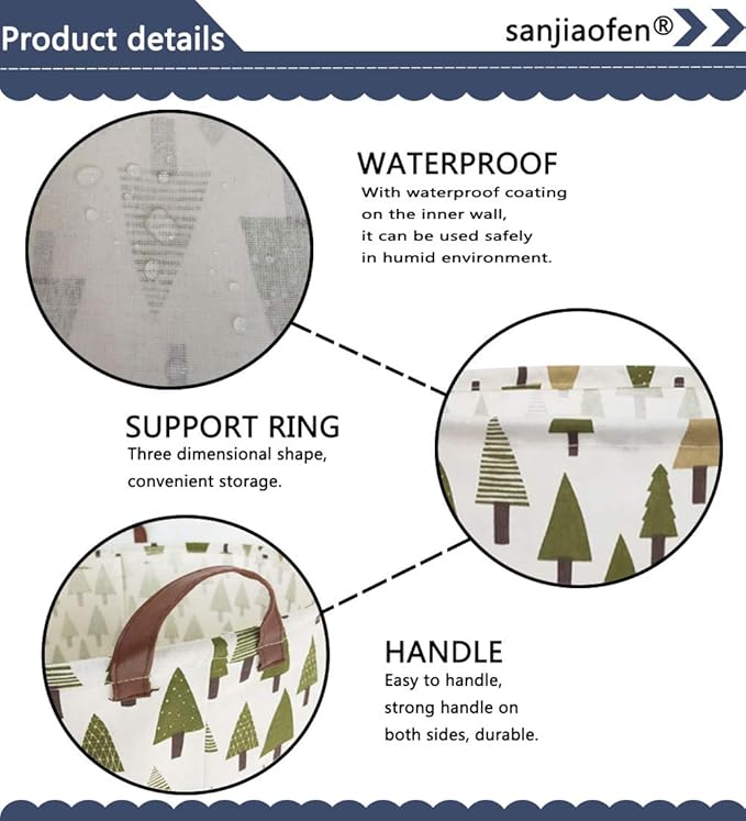 Large Storage Bins,Canvas Fabric Laundry Basket Collapsible Storage Baskets for Home,Office,Toy Organizer,Home Decor (Tree)