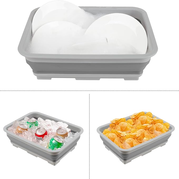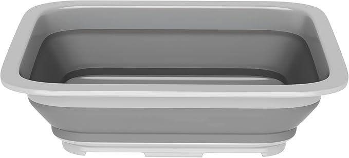 Wakeman 10L Gray Collapsible Multiuse Bin-Portable Wash Basin/Dish Tub/Ice Bucket with 10 L Capacity for Camping, Tailgating, Outdoors, 14.75” L x 10.75” W x 5” H