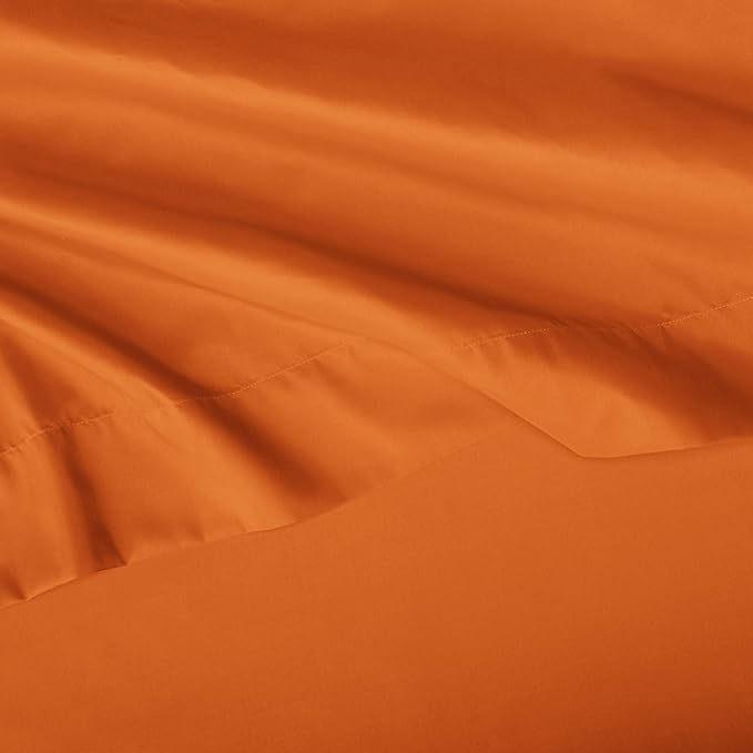 - Full-size set in Bright Orange includes (1) 81 x 96-inch flat sheet, (1) 55 x 75 x 14-inch fitted sheet, and (2) 20 x 30-inch pillowcases