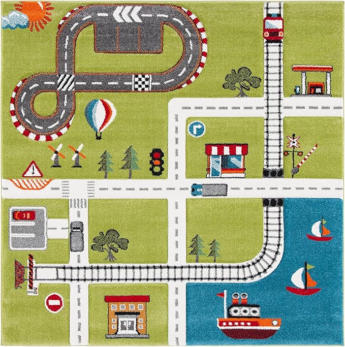 SAFAVIEH Carousel Kids Collection 5'3" Square Green / Ivory CRK192Y Neighborhood Nursery Playroom Area Rug