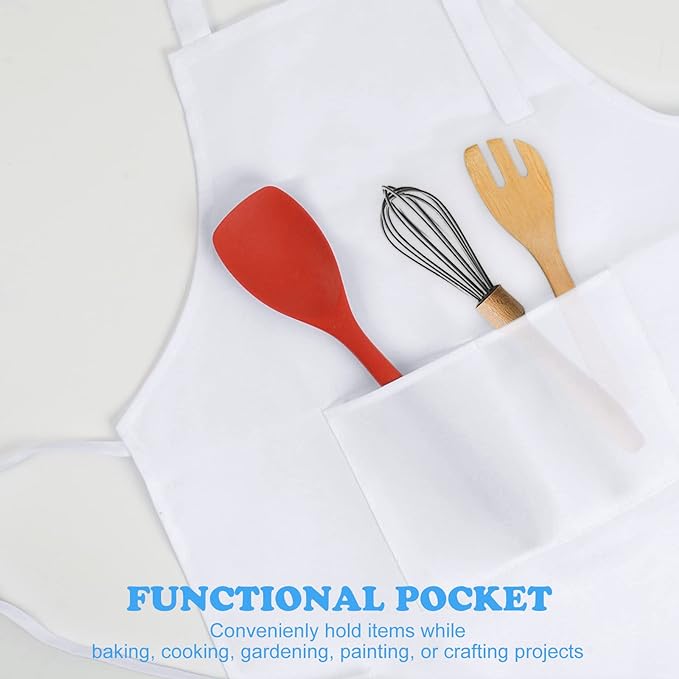 • Functional Kids Apron : Our aprons feature an adjustable neck strap and a quick tie in the back to fit kids of all ages, sizes and shapes.The 2 front pockets is convenient for kids to hold cooking baking,craft, painting tools