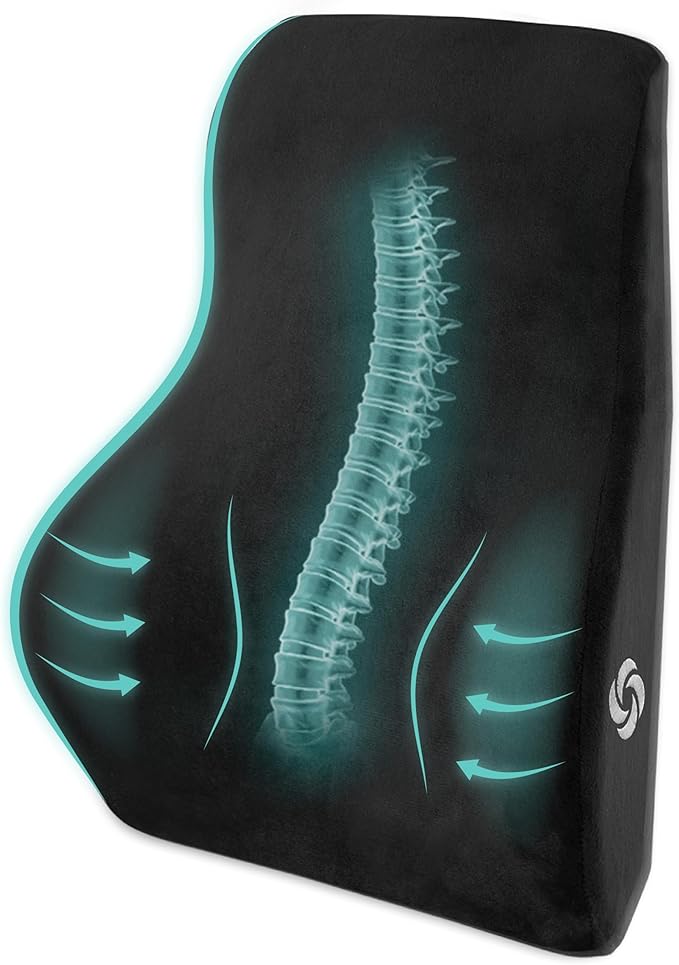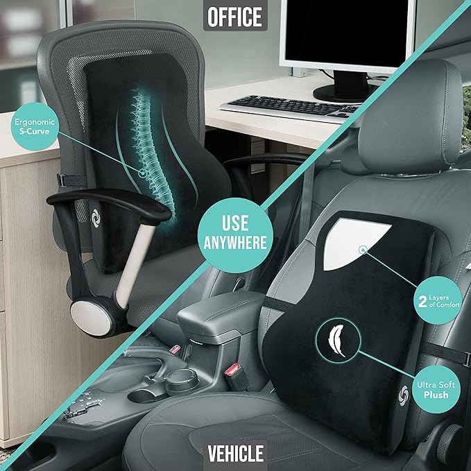 - CONTOURED DESIGN - This lumbar cushion has your back! This vital travel accessory is designed with contours that align with the natural curvatures of the lower back to maximize pain relief in the tailbone and its surrounding muscles. The high-grade memory foam that lines the interior of the cushion absorbs jolts from rough road conditions including potholes, uneven pavement, and off-roading conditions. Sit back and relax—with this cushion, you won’t feel a thing.