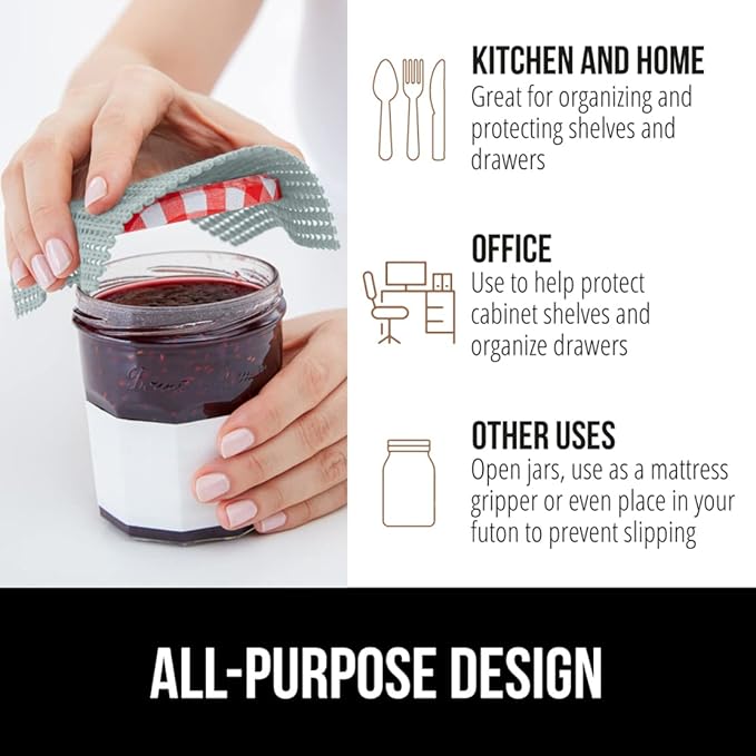- KITCHEN, OFFICE, OR BATHROOM: liner can be used in several areas of your home; use it in your kitchen, pantry, work station, office room, laundry room, bathroom vanity shelves and more; perfect for organizing your space and home; use any excess liner pieces for opening jars and can also work great for a slipping futon, couch cushions, or mattresses