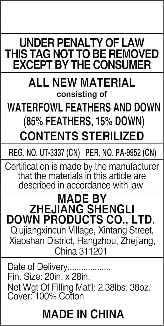 - Fill Material : Waterfowl Feathers and Down(85% Feathers,15% Down)