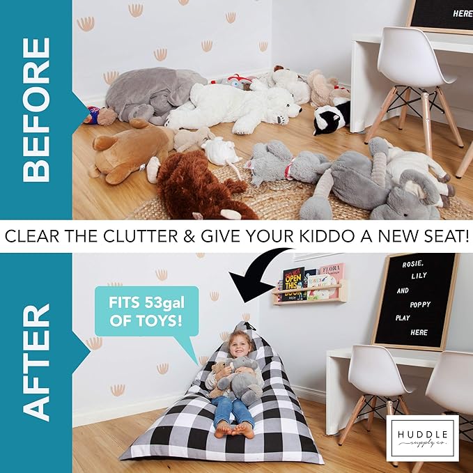 - Stylish Seat, Smart Storage: A dream come true for parents struggling with kid clutter, these Stuffie Seats serve as delightful bean bags while using stuffed animal toys, blankets, duvets, cushions as filling to make bean bag stuffed animal storage