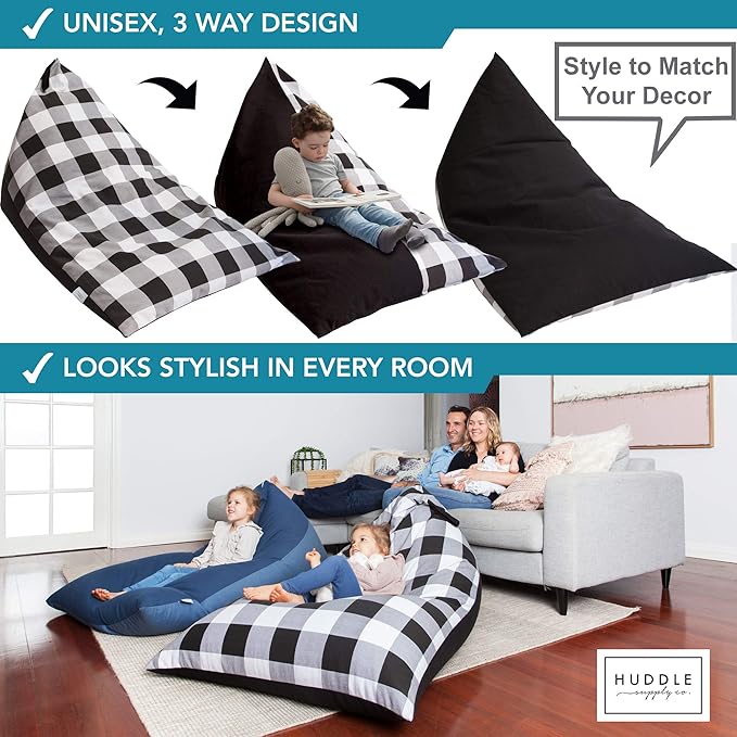 Stuffed Animal Bean Bag Storage - Machine Washable Bean Bag Chair for Kids - Extra Large Cover for Stuffing with Plush Toys, Pillows, Soft Items - Stuffed Animal Holder for Boys & Girls - Gingham