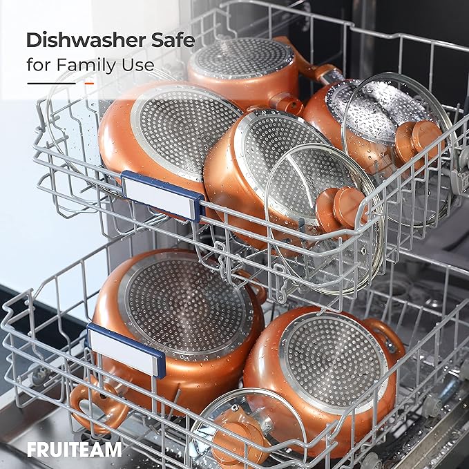 FRUITEAM 10pcs Cookware Set Ceramic Nonstick Soup Pot/Milk Pot/Frying Pans Set | Copper Aluminum Pan with Lid, Induction Gas Compatible, 1 Year Warranty Mothers Day Gifts for Wife…