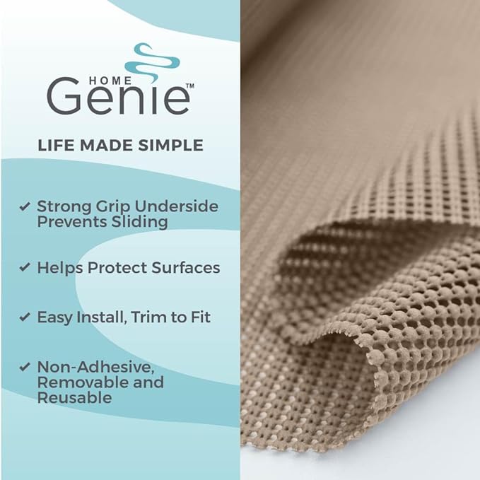 HOME GENIE Drawer Shelf and Cabinet Liner, Durable with Strong Grip, 17.5 Inch x 20 FT, Non Adhesive Liners Protect Kitchen Cabinets and Cupboard, Bathroom Drawers and Shelves, Desks, Light Taupe
