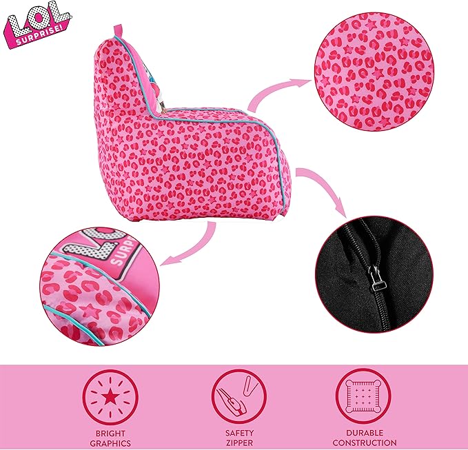 Idea Nuova LOL Surprise Kids Nylon Bean Bag Chair with Piping & Top Carry Handle, Large