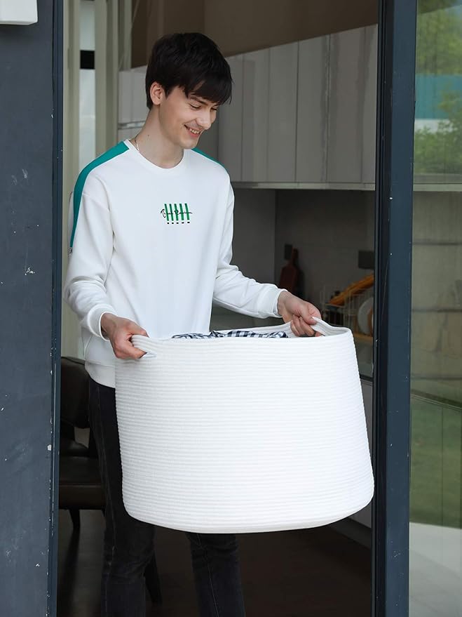 - Generous 24"x17" Size: Unleash grandeur with our cotton rope basket, designed for your most abundant storage needs. Ideal for clothes, towels, blankets, and more. Ensure your space accommodates this masterpiece before acquiring.