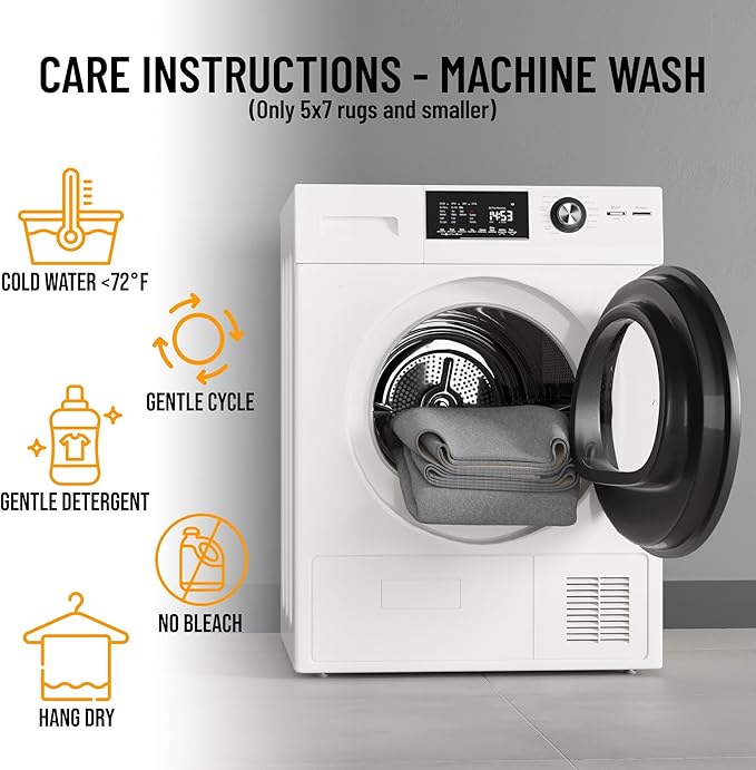 - [EASY CARE]: Stress free cleaning includes regular vacuuming (no brushes/rollers) and gently spot cleaning out minor stains with mild detergent or carpet cleaner. Creases and curling should flatten with 5-7 days of regular use. To expedite this process, reverse roll the corner with the crease and gently apply pressure.