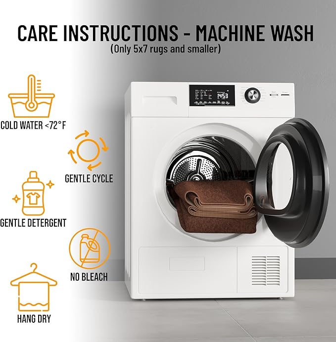 - [EASY CARE]: Vacuum regularly (no brushes/rollers) and gently spot cleaning out minor stains with mild detergent or carpet cleaner; Creases and curling should flatten with 5-7 days of regular use; Reverse roll the corner with the crease and gently apply pressure