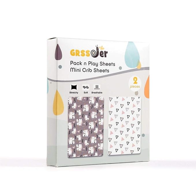- Ultra Soft & 4-way Stretch: Made of extra soft stretchy jersey knit fabric. GRSSDER mini crib sheets offer a breathable, sweat-absorbent tee shirt like feel for exceptional comfort, providing your little ones a safe and to stay in place throughout the day.