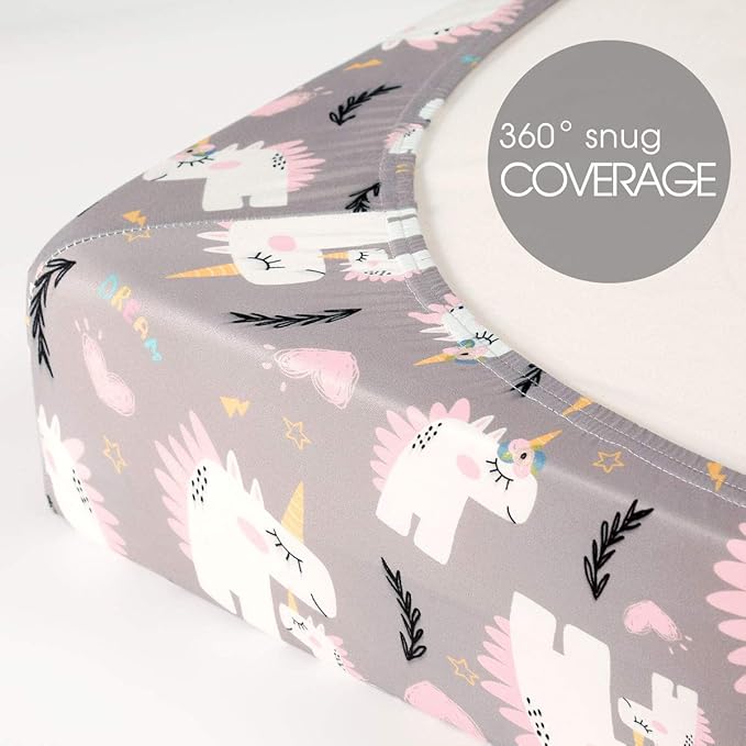 - Apple It Within Seconds: Thanks to the elastic bottom, our pack n play sheets come in a classic, pink simple triangle/dream unicorn print that will put the finishing touches to any bedding. Make sure to give your darling a serene and calm bed to rest in.