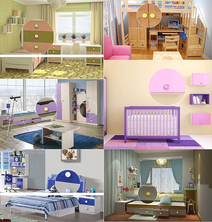 - The cute dresser knob features rounded and non-angled shape, which provides a comfortable feeling on the hand. These kid drawer knobs present rich colors and bring new life into your kitchen, closet, laundry rooms, cupboard ect.