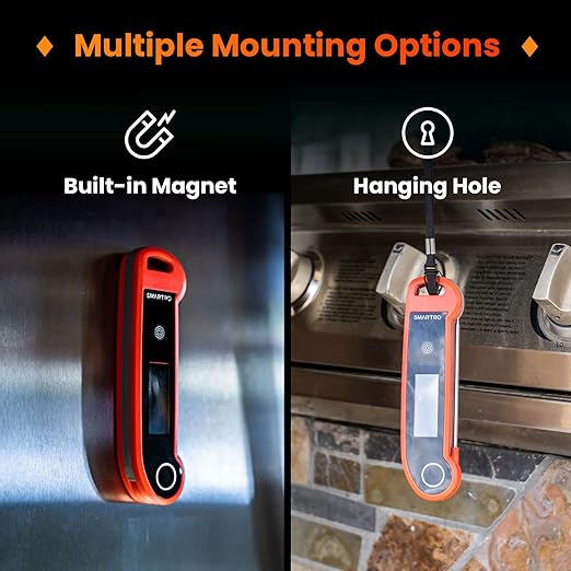 - Magnetic Backing and Hanging Hole: You can stick the ST49 cooking thermometer to any metal surface, and use the hanging hole to hang it on a hook or rope.