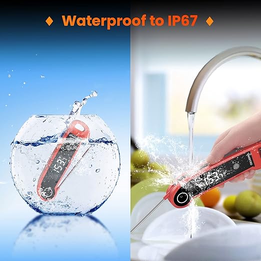 - Completely Waterproof: Compared to other meat thermometers, the ST49 has a best-in-class IP67 waterproof rating, meaning it can withstand up to 1 meter of water. No more worrying about contamination, just run under water and rinse with soap like other kitchen tools.