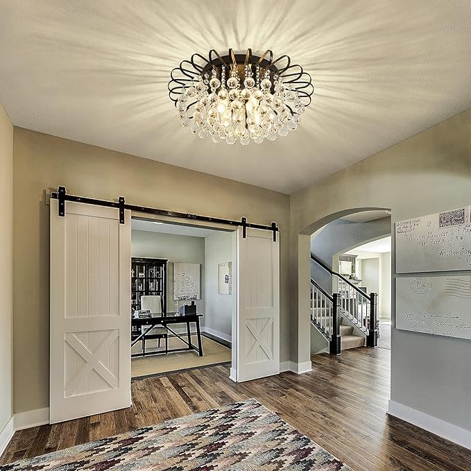 - Bulb Base:Classy stylish crystal ceiling light is compatible any E12 bulbs,4 bulbs is required(bulbs not included). It is also can be dimmable when you used a dimmable bulbs and compatible dimmer switch.you can enjoy bright light or calming dim light..