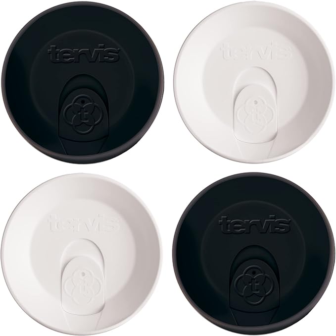 Tervis Travel Lid Made in USA Double Walled Insulated Tumbler Travel Cup Keeps Drinks Cold & Hot, Fits 24oz Tumblers & 16oz Mugs - 4pk, Assorted Black and White