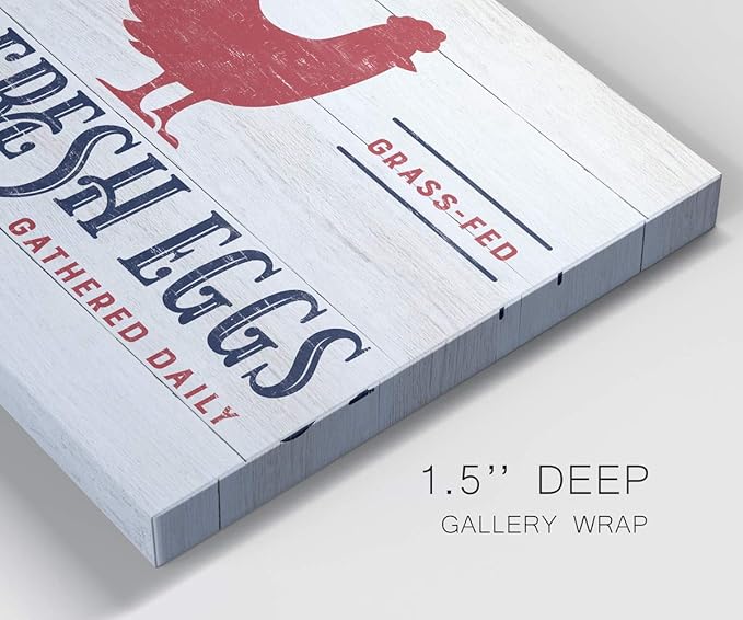 Renditions Gallery Canvas Animal Wall Art Home Paintings & Prints Organic Farm Fresh Eggs Abstract Red & White Modern Chicken Artwork Decorations for Bedroom Office Kitchen - 12"x18" LT33