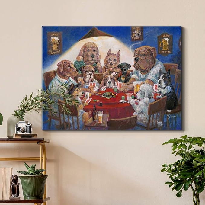 Renditions Gallery Canvas Animal Wall Art Home Paintings & Prints Poker Playing Doggos Abstract Family Festival Modern Artwork Decorations for Bedroom Office Kitchen - 24"x36" LT33