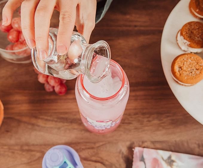 - Kawaii Style Made for Fans: One side features Hello Kitty with her name in cute bubble lettering. Tasty fruits and sweet treats decorate the pink water bottle, along with a smattering of printed sparkles.