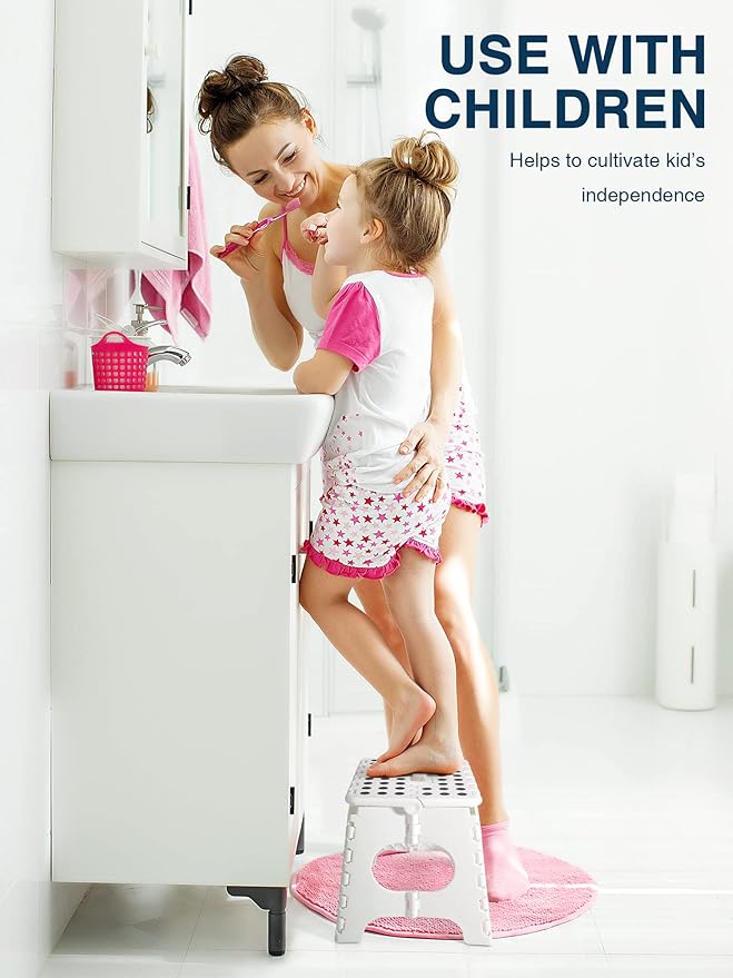 - [✅️Safe Round Corner Side ✅️] - Dyforce Kids folding step stool have a safety stop gap design that allows the folding stool to get rid of the risk of being squashed, great for users. Four round corners protect your body from clashing.Dyforce is always taking your safety first.
