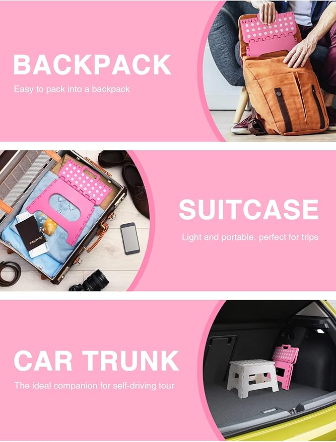 - ANTI-SLIP RUBBER BASE: Special rubber dots on the surface and an anti-slip black rubber strap on each foot provide maximum foot grip and comfort while preventing slippage. The folding step stool's unique, grip-dot textured surface makes it safe for everyone.