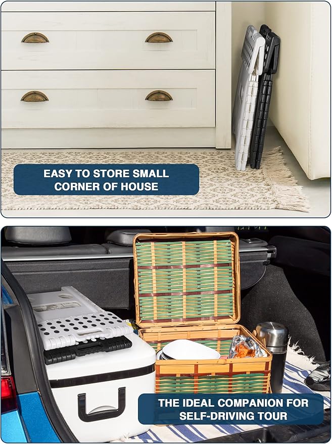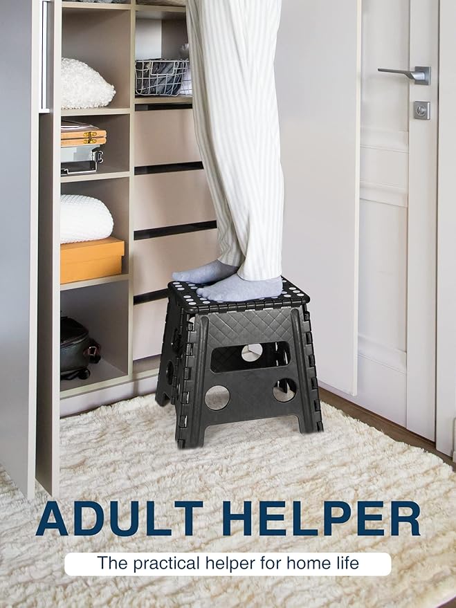 - ANTI-SLIP RUBBER BASE: Special rubber dots on the surface and an anti-slip black rubber strap on each foot provide maximum foot grip and comfort while preventing slippage. The folding step stool's unique, grip-dot textured surface makes it safe for everyone.