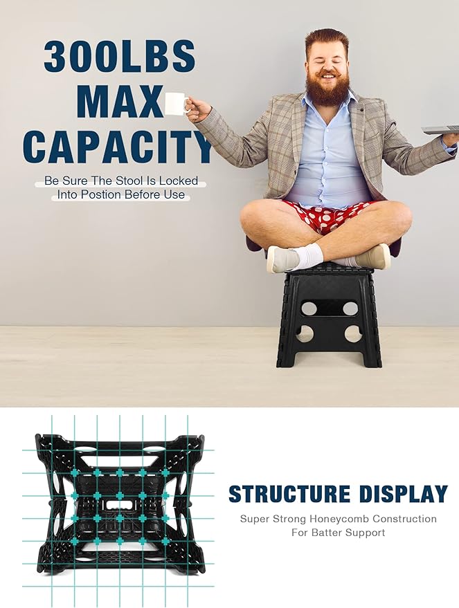 - Special Feature : Portable, Foldable, Heavy Duty, Storage, Lightweight, Non-Skid Feet, Slip Resistant Step, Hold up to 300lbs, absolutely safe for kids Portable, Foldable, Heavy Duty, Storage, Lightweight, Non-Skid Feet, Slip Resistant Step, Hold up to 300lbs, absolutely safe for… See more