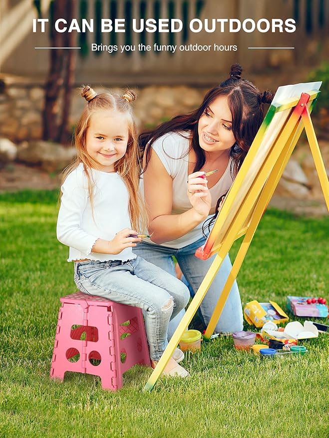 Non-Slip Folding Step Stool - 13 inch Height Heavy Duty Foldable Stool for Adults Kids, Plastic Step Stool Camping Stepping Stool - Pink