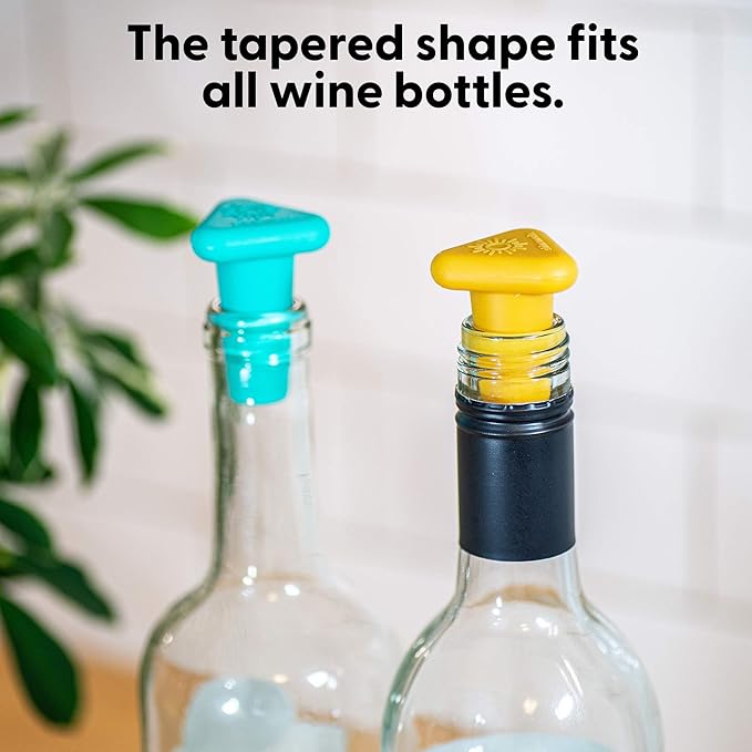 - Get the party started: Set of four silicone wine stoppers.
