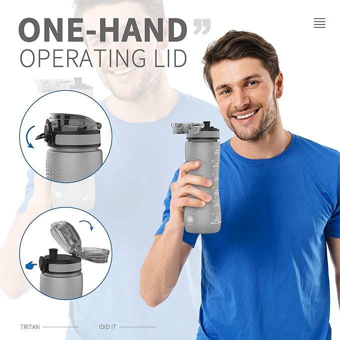 - ONE-HANDED OPERATING - Kitart water bottle comes with a one-handed opening lid. When you are cycling, climbing, or other exercises, you still can drink water with one hand leisurely.