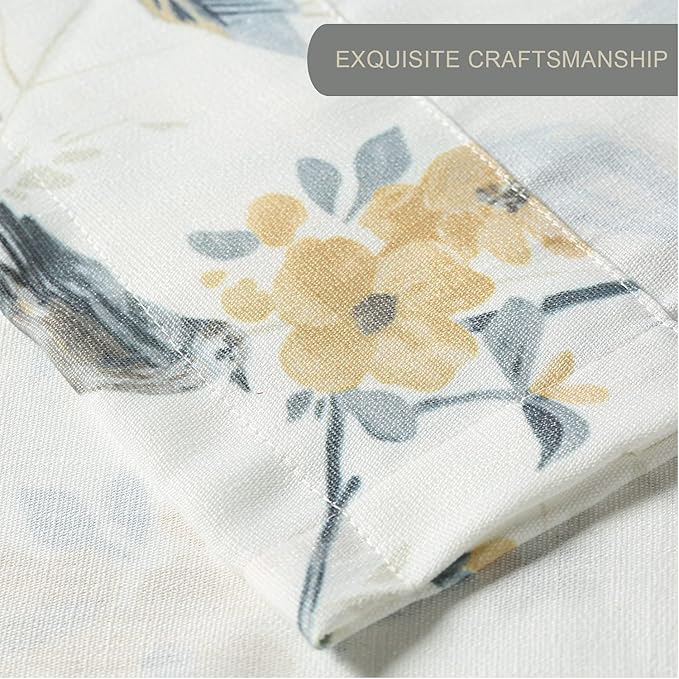 Leeva Kitchen Curtains Valances for Kids Room Porch, Linen Energy Efficient Birds Print Pattern Rod Pocket Small Drapes for Bedroom, 52 x 12, Grey, One Panel