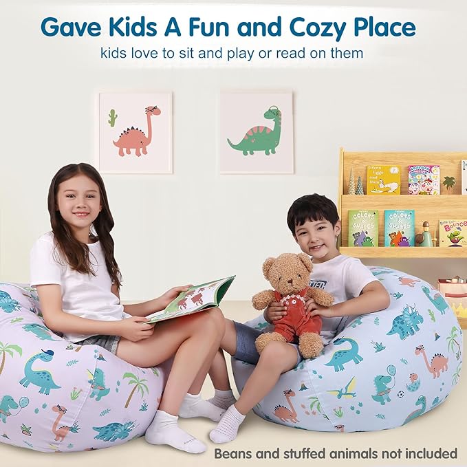 - Great Stuffed Animal Storage: X-Large size dinosaur bean bag chair cover at 31" and could hold up to 90 small stuffed animals toys (Not Included). The cute design adds a charming touch to the room. And cool patterns to choose from