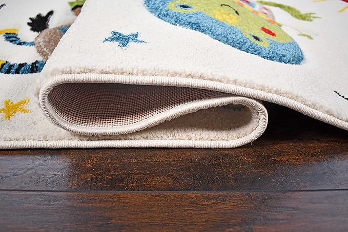 KC Cubs Boy & Girl Modern Decor Multicolor Area Rug and Carpet Collection for Kids, Toddlers and Baby Nursery, Animal Friends in Outer Space