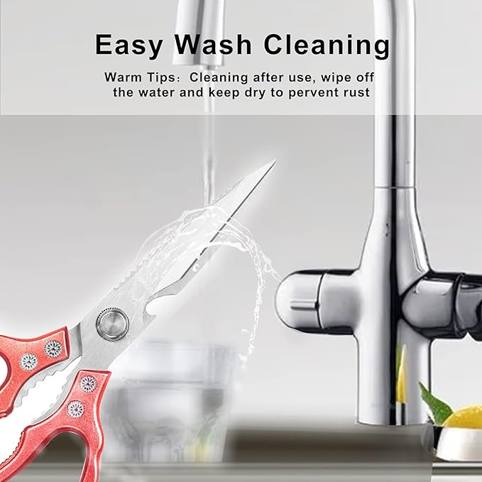 - ✂[More Functions] Sharp scissors have more functions. They can be used to scrape fish scales. Of course, they can be used to open bottles and crush walnuts or nuts. Clever scissors are also good gifts for mothers, wives, and friends! Give a gift of chef-grade scissors to any culinary enthusiast on the list; they will love the culinary scissors and they will thank you for this thoughtful and useful gift.