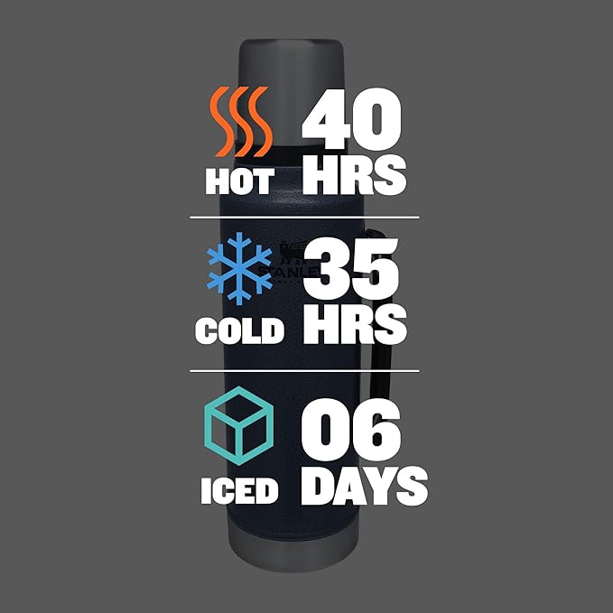 - KEEP IT HOT OR COLD: Our Stanley Classic Vacuum Bottle is made with superior insulation that keeps liquids (soup, coffee, tea) hot or cold drinks cool for up to 24 hours. It’s also made with BPA-free materials, keeping its contents safe to consume