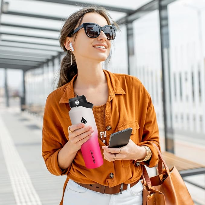 - 【FUNCTIONAL DESIGN】32oz(946ml)insulated water bottle fit any standard car cup holder comes with The non-slip layer of Powder Coating ensures you hang on to your bottle during a work out, hike or yoga.Various colors SENDESTAR is good for people of all ages and perfect companion for all activities.
