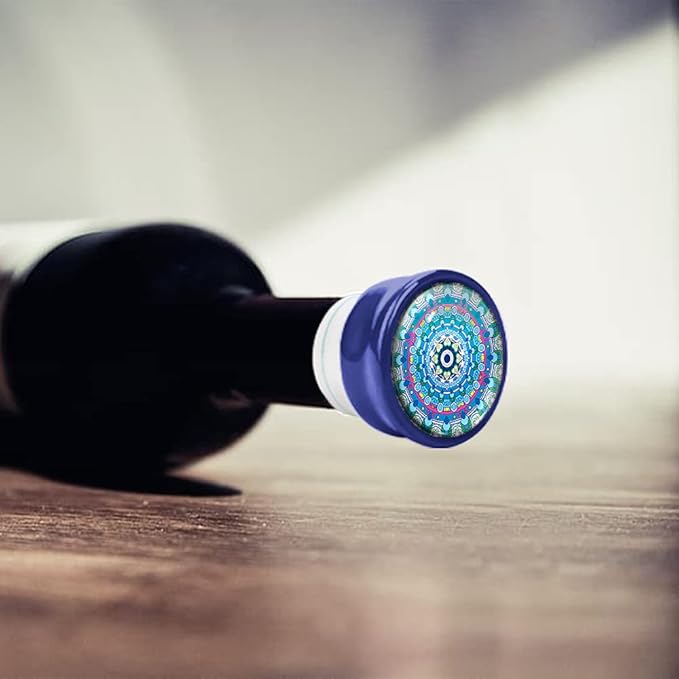 WIRESTER Set of 4 Ceramic Cork Decorative Wine Bottle Stoppers For Bar, Holiday, Party, Wedding - Bohemian Mandala (Colorful, Sunshine, Blue, Wood Look)