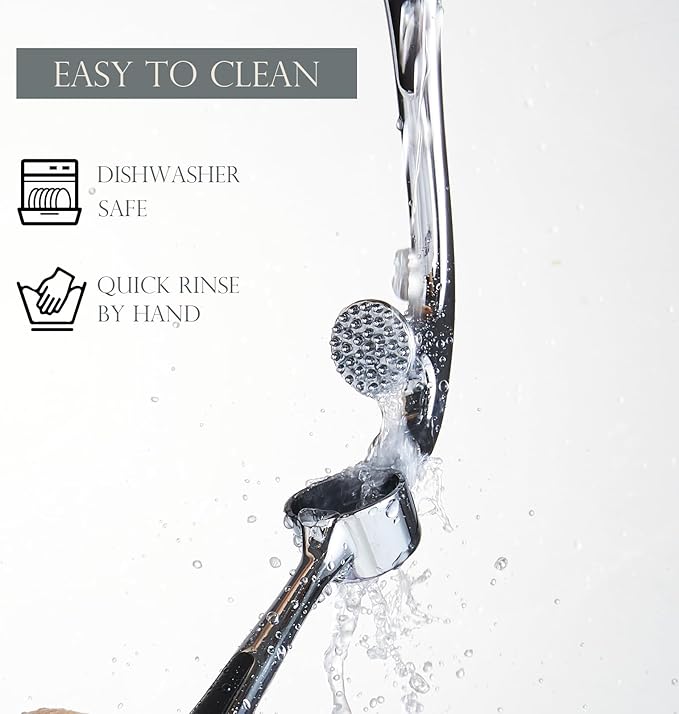 - Multi-Purpose - This professional garlic squeezer is perfect for mashing fresh garlic or ginger into a fine paste to mashed potatoes, sautéed shrimp, meatballs, salad dressings or sauces, also available for other foods, like ginger, leafy herbs, chilies, seeds, and soft nuts., etc