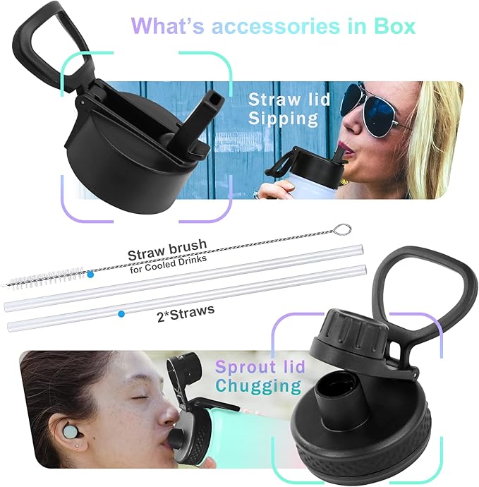 - 4. Metal Water Bottles with Spout lid: Akyta Sports water bottles comes with straw lid & Spout lids,lids with flex handle, lets you sip, Sip or chug your beverage with ease. Leak-Proof, Splash resistant, fit your every need.
