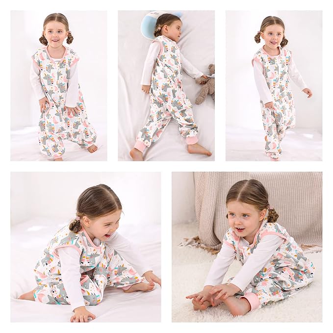 - CONSIDERATE AND SAFETY DESIGN - Sleeveless design allow heat to escape and prevent your child from overheat, keep them good sleep all night. Unzip from the top to make it easy to place baby in sleepsack.Unzip from the bottom to make it convenient for changing diaper.Toddler sleeping sack comes with zipper protection to protect the baby from scratch.This sleep sack has 2 large pockets in front,baby can put small hands.